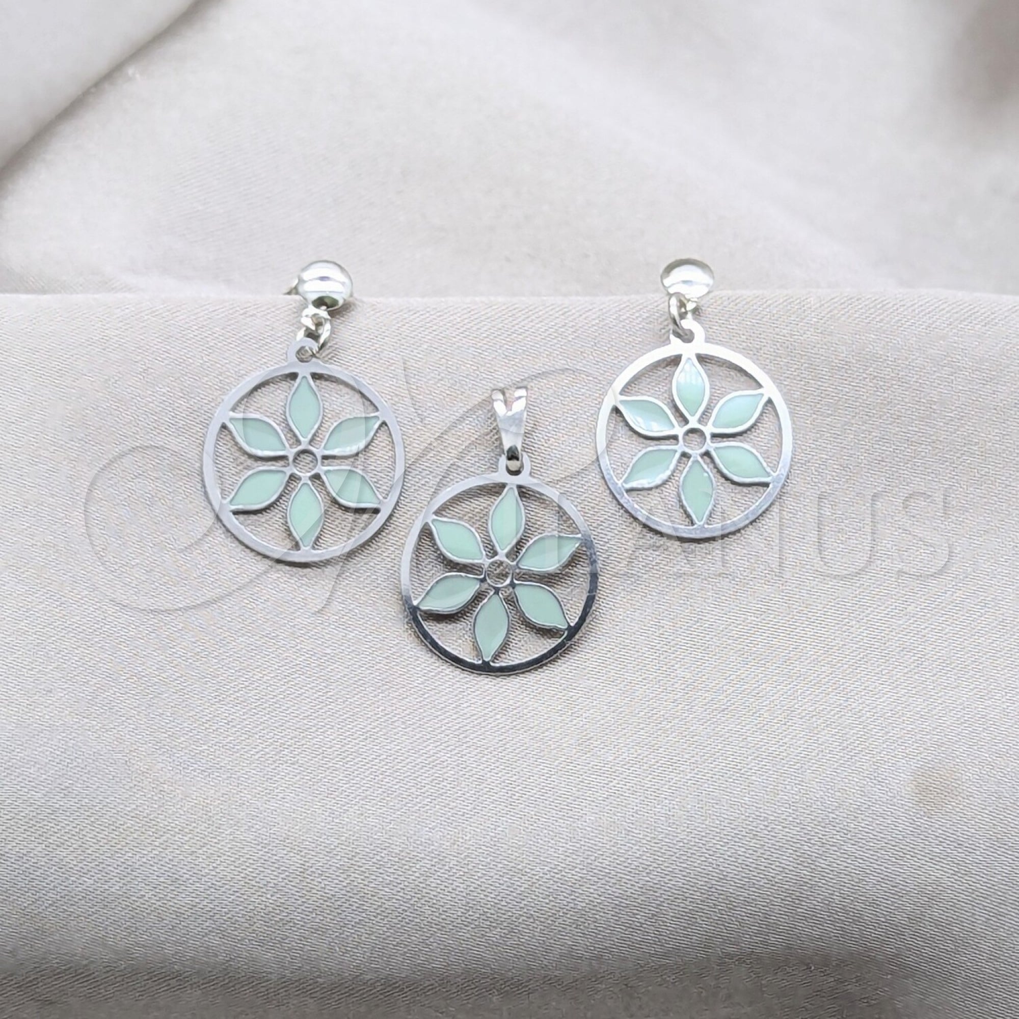 - Stainless Steel Earring and Pendant Set.
