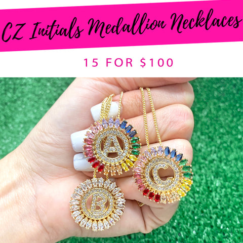 15 CZ Initials Medallion Necklaces ($6.67 each) for $100 -Perfect for starting Business -Great to Refill your Store or Showcase -Save time and let us select Assorted Best-Sellers for you *Assorted Styles will be sent similar to those in the image, not always the same. *Sales of Kits are final....