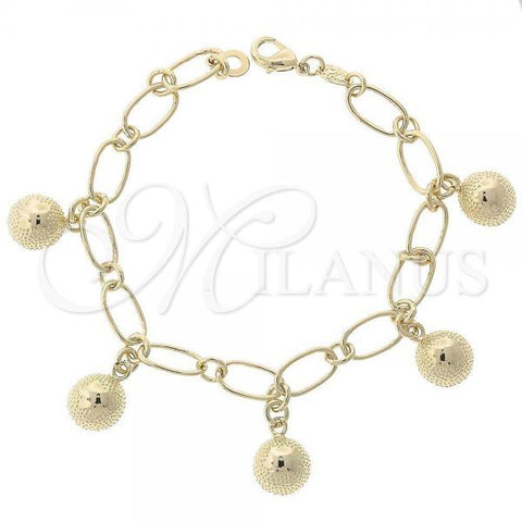 Gold Filled Charm Bracelet. Great Bracelet for Women. Ball Design. Diamond Cutting Finish. Measures: 7.0 x 0.3 x 0.2 in Weight: 12.9 g. Thickness: 08 MM Thickness.