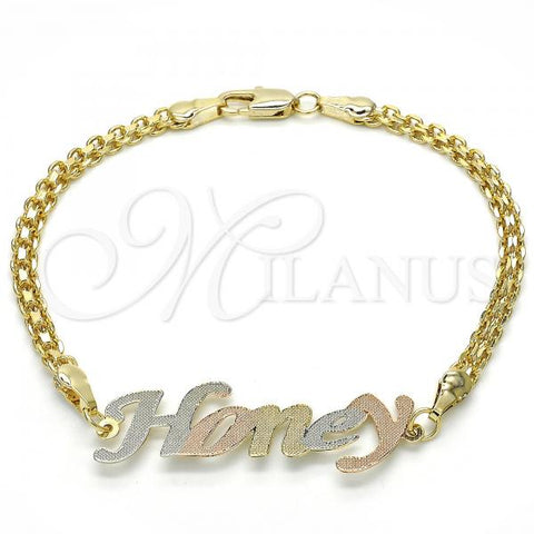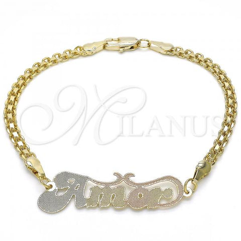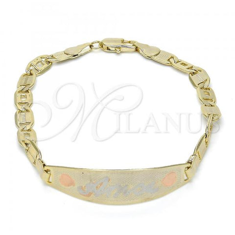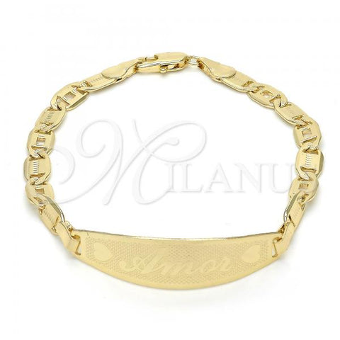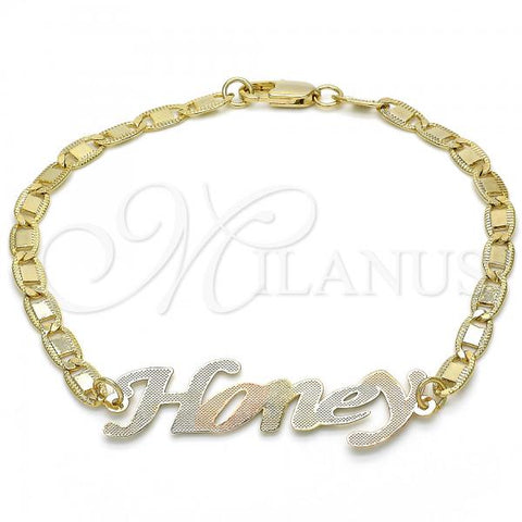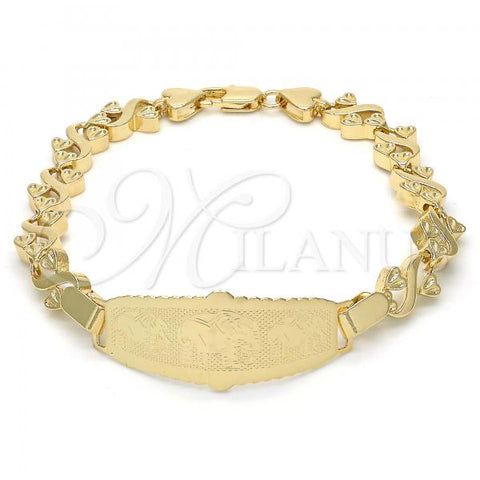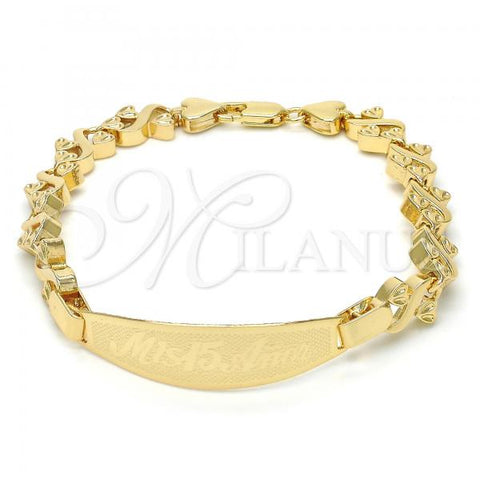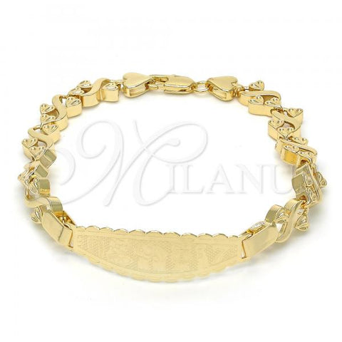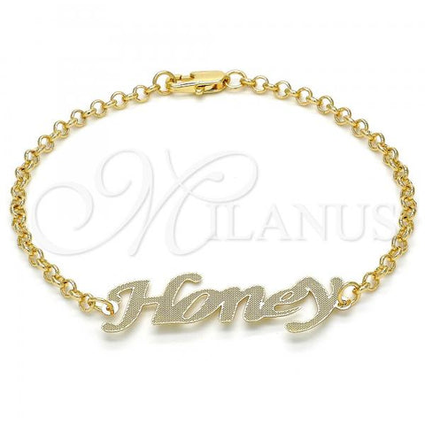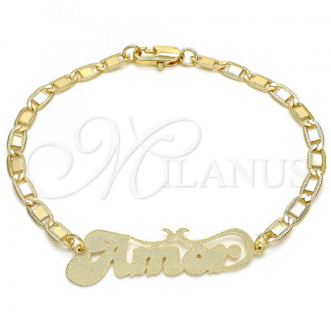 Gold Filled Fancy Bracelet. Great Bracelet for Women. Nameplate and Love Design. Polished. Weight: 5.7 g. Thickness: 04 MM Thickness.
