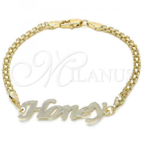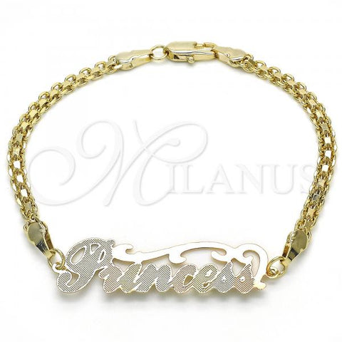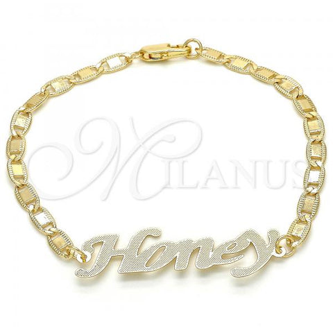 Gold Filled Fancy Bracelet. Great Bracelet for Women. Nameplate Design. Polished. Weight: 3.3 g. Thickness: 03 MM Thickness.
