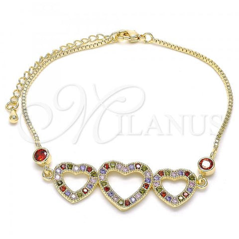 Gold Filled Fancy Bracelet. Also contains White Micro Pave. Great Bracelet for Women. Heart Design. Polished. Measures: 8.0 x 0.6 x 0.3 in Weight: 15.4 g. Thickness: 10 MM Thickness.