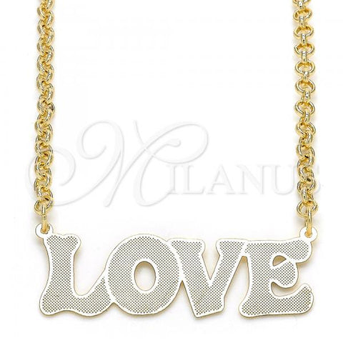 Gold Filled Pendant Necklace. Great Necklace for Women. Nameplate and Love Design. Polished. Weight: 8.8 g. Thickness: 03 MM Thickness.