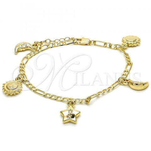Gold Filled Charm Bracelet. Also contains White Crystal. Great Bracelet for Women. Owl and Figaro Design. Polished. Measures: 7.0 x 0.6 x 0.2 in Weight: 4.6 g.