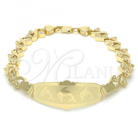 Gold Filled ID Bracelet. Great Bracelet for Women. Dolphin Design. Polished. Weight: 6.9 g. Thickness: 05 MM Thickness.