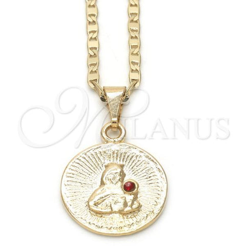 Gold Filled Pendant Necklace. Also contains Garnet Cubic Zirconia. Great Necklace for Men and Women. Sagrado Corazon de Maria Design. Polished. Measures: 18.0 x 1.0 x 0.6 in Weight: 6.5 g. Thickness: 02 MM Thickness.