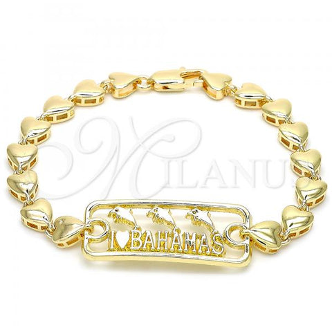 Gold Filled Charm Bracelet. Also contains White Crystal. Great Bracelet for Women. Dolphin and Hollow Design. Diamond Cutting Finish. Measures: 8.0 x 0.9 x 0.2 in Weight: 15.0 g. Thickness: 05 MM Thickness.