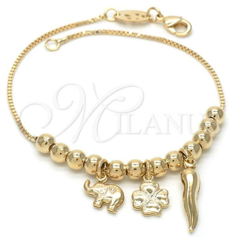 Gold Filled Charm Bracelet. Great Bracelet for Women. Elephant and Four-leaf Clover Design. Polished. Measures: 8.0 x 0.3 x 0.3 in Weight: 4.0 g.