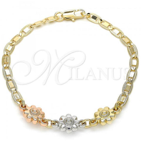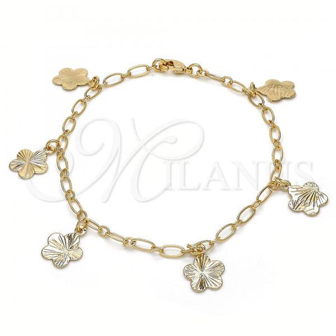 Gold Filled Charm Bracelet. Great Bracelet for Women. Flower Design. Polished. Weight: 3.3 g. Thickness: 03 MM Thickness.