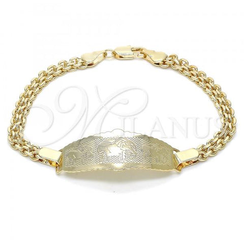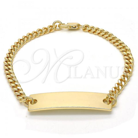 Gold Filled ID Bracelet. Great Bracelet for Boys and Girls. Figaro Design. Polished. Measures: 6.0 x 0.3 x 0.1 in Weight: 2.2 g. Thickness: 01 MM Thickness.