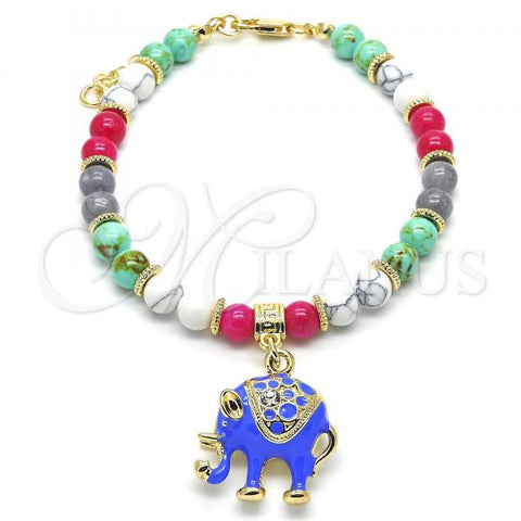 Gold Filled Fancy Bracelet. Also contains Blue Topaz Opal. Great Bracelet for Women. Elephant and Ball Design. Polished. Measures: 8.0 x 0.2 x 0.2 in Weight: 4.8 g.