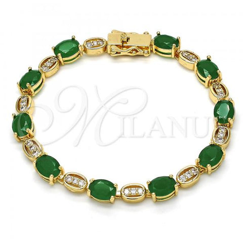 Gold Filled Tennis Bracelet. Also contains Green and White Cubic Zirconia. Great Bracelet for Women. Polished. Measures: 8.0 x 0.2 x 0.2 in Weight: 14.7 g. Thickness: 06 MM Thickness.