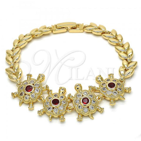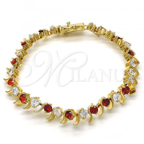 Gold Filled Tennis Bracelet. Also contains Ruby and White Cubic Zirconia. Great Bracelet for Women. Polished. Measures: 8.0 x 0.2 x 0.2 in Weight: 12.3 g. Thickness: 06 MM Thickness.