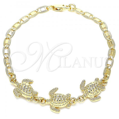 Gold Filled Charm Bracelet. Also contains White Crystal. Great Bracelet for Women. Dolphin and Hollow Design. Enamel Finish. Measures: 8.0 x 1.0 x 0.2 in Weight: 13.7 g. Thickness: 05 MM Thickness.