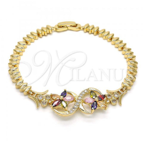 Gold Filled Tennis Bracelet. Also contains Sapphire Blue and White Cubic Zirconia. Great Bracelet for Women. Polished. Measures: 8.0 x 0.2 x 0.2 in Weight: 20.3 g. Thickness: 06 MM Thickness.