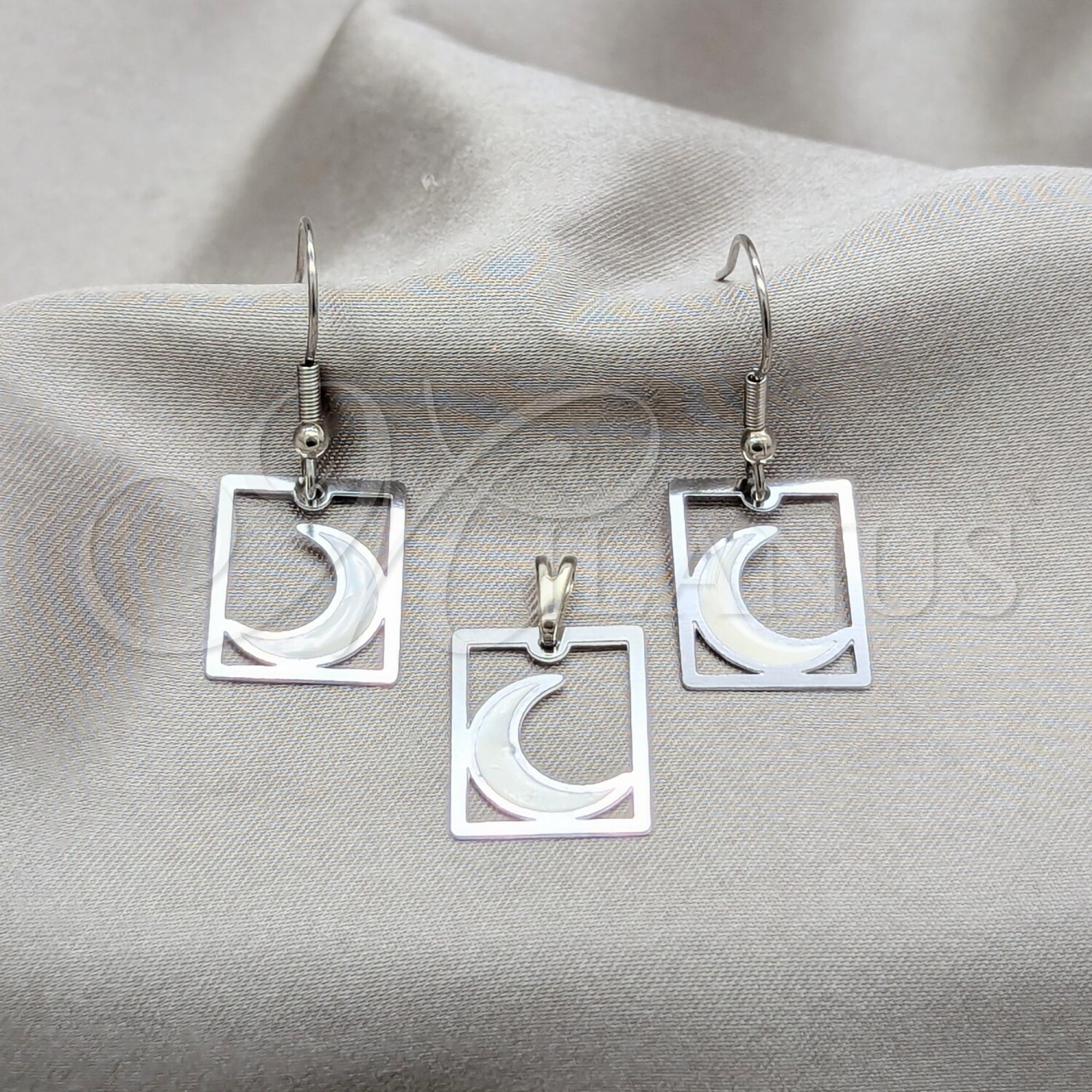 - Stainless Steel Earring and Pendant Set.