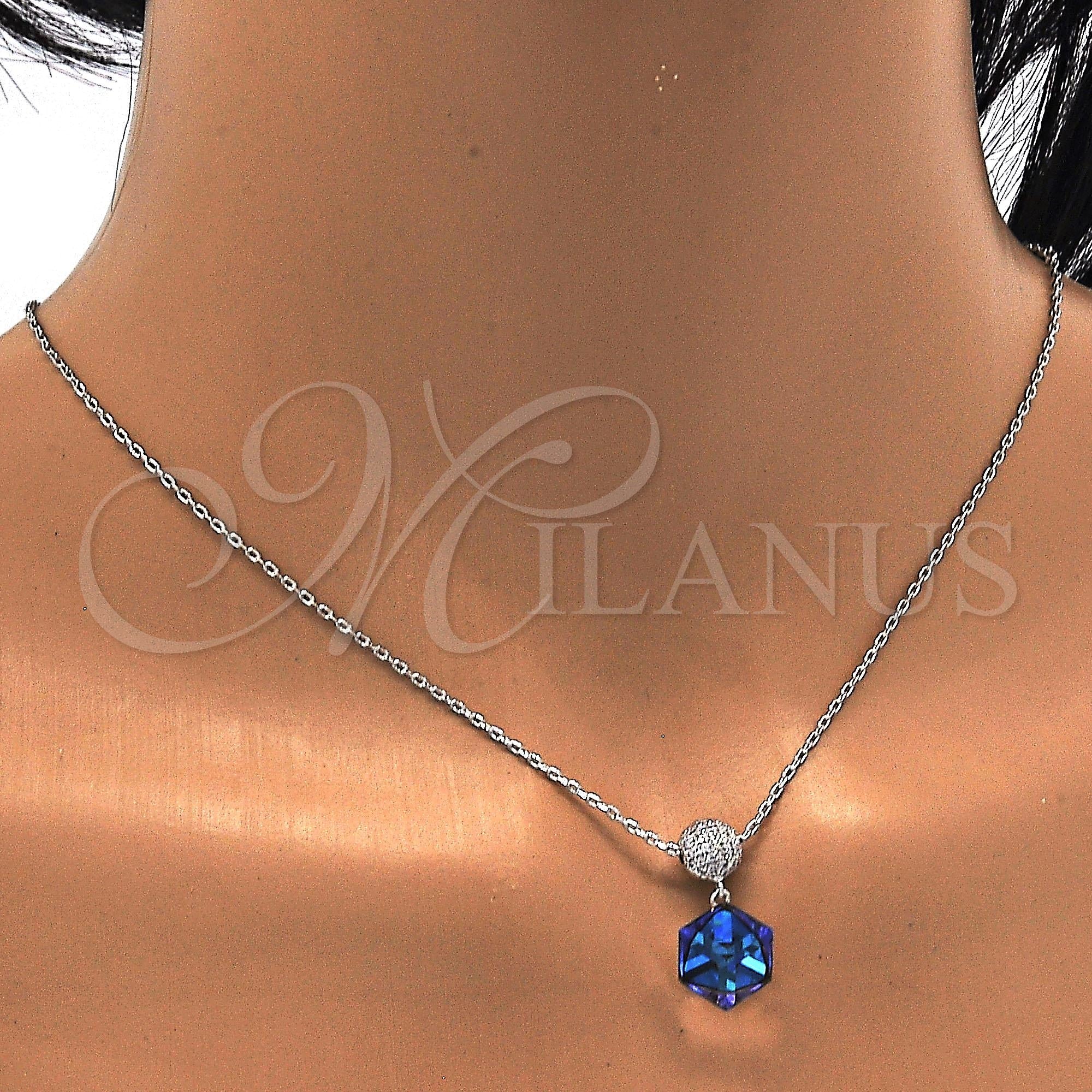 • Also contains Bermuda Blue Swarovski Crystals and White Micro Pave.