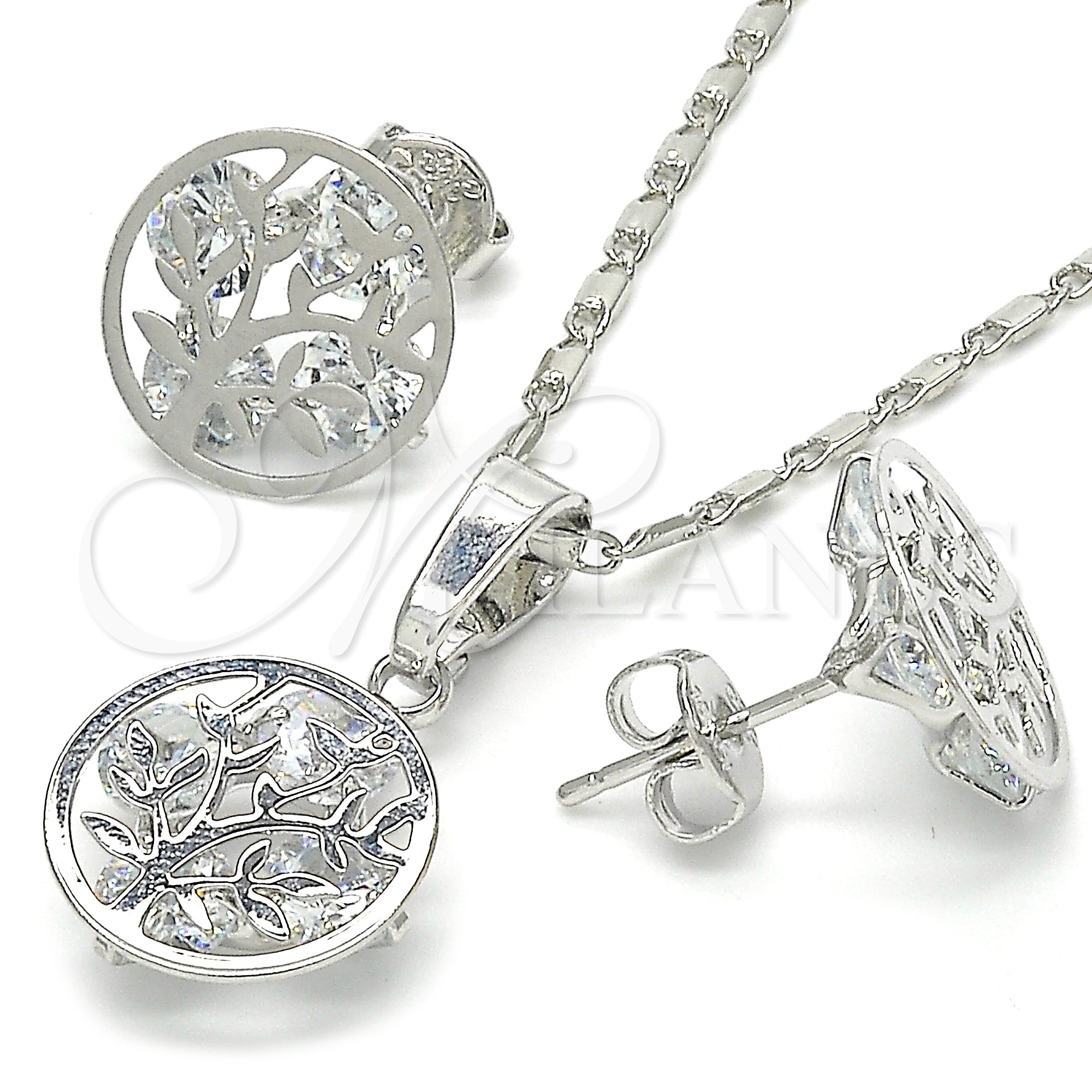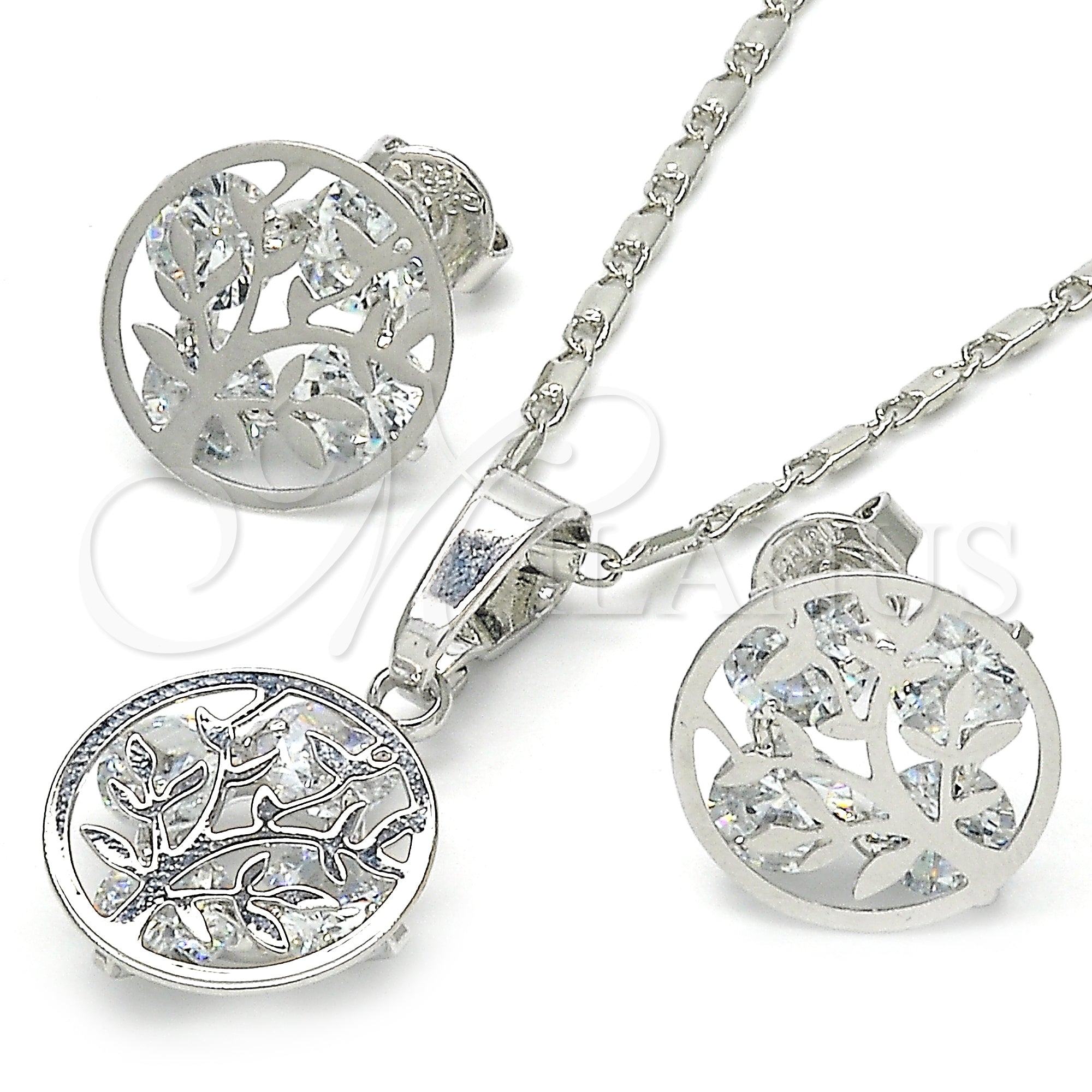 • Rhodium Plated Earring and Pendant Set.