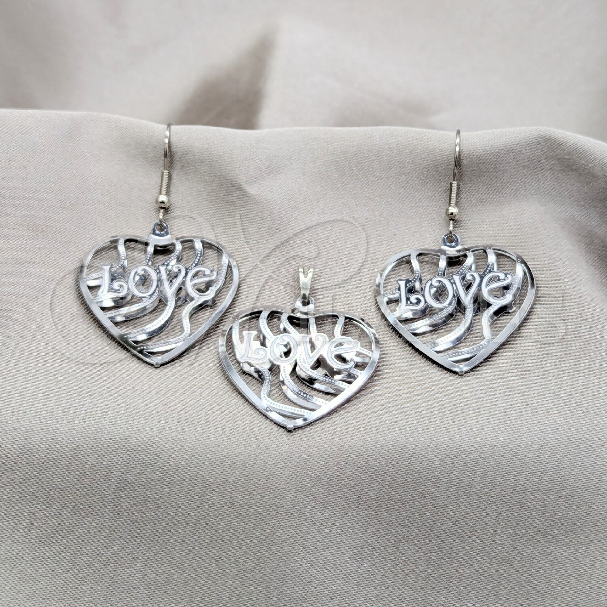 • Stainless Steel Earring and Pendant Set.